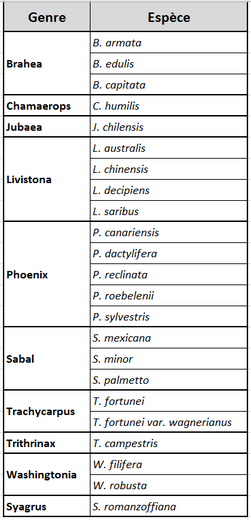 Le papillon palmivore est inféodé à la famille des palmiers : les Arecaceae. Dans son aire d’origine, ce ravageur s’attaque aux espèces suivantes : Trithrinax campestris, Butia yatay, Chamaerops humilis, Phoenix canariensis et Livistona sp. En France, on répertorie environ 21 espèces différentes, appartenant à 10 genres, de palmiers attaqués (fig. 1). Le Ministère de l’Agriculture, de la Pêche et de l’Alimentation de Catalogne y a ajouté le Syagrus romanzoffiana, soit 22 espèces au total (Sarto, 2013). En France, Italie et Espagne, les espèces de palmier les plus touchées initialement ont été C. humilis, T. fortunei et P. canariensis (Riolo et al., 2004; Chapin, 2006; André & Tixier-Malicorne, 2013; Sarto i Monteys, 2013).