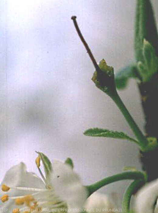 Le pistil sera le premier affecté par le gel. Pistil et ovaire noirciront. Les pétales de la fleur peuvent également brunir. Ce noircissement n'apparaît que quelques heures après la gelée.