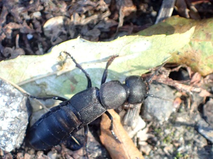 Les staphylins sont des coléoptères qui se distinguent par des élytres très courts laissant visible plus de la moitié du corps et dont les larves et les adultes consomment des limaces et ravageurs souterrains pour les espèces de grande taille (photo). Les petites espèces se nourissent d'acariens phytophages ou d'oeufs de diptères, et pouvent être parasites au stade larvaire de larves de diptères.