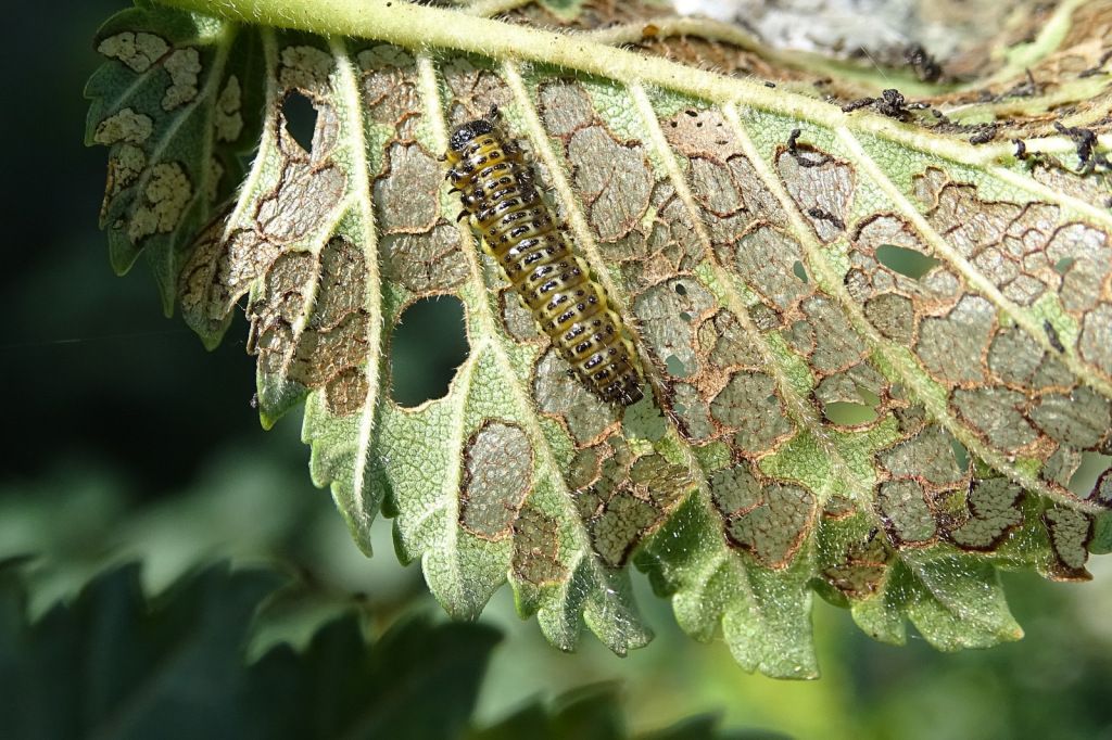 La présence de ce coloéoptère laisse peu de place au doute. Très rapidement, il ne restera sur les feuilles qu’une fine dentelle puis par la suite, seulement les nervures.