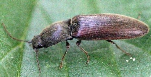 A l’issue du stade larvaire, les nymphes, puis les adultes, passent l’hiver dans le sol et sortent au printemps. Les adultes sont de forme allongée et mesurent de 7 à 8 mm de long. Si on les retourne sur le dos, ils se rétablissent en sautant de façon spectaculaire, c’est l’un des moyens d’identifier le ravageur.