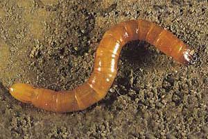 Les larves, qui occasionnent les dégâts, sont jaunes, fines et allongées, leur cuticule est très résistante rendant la larve difficile à rompre ce qui leur vaut le surnom de « vers fil de fer ». Elles vivent dans le sol pendant quatre années, sauf pour Agriotes sordidus dont le cycle de développement peut s’achever en une seule années. Ainsi, à une période donnée, on peut observer des larves à tous les stades de développement et de tous les âges. Ces larves qui mesurent entre 2 et 20 mm de long pour environ 2mm de diamètre.
