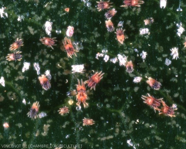 - Les acariens immatures sont rouges.