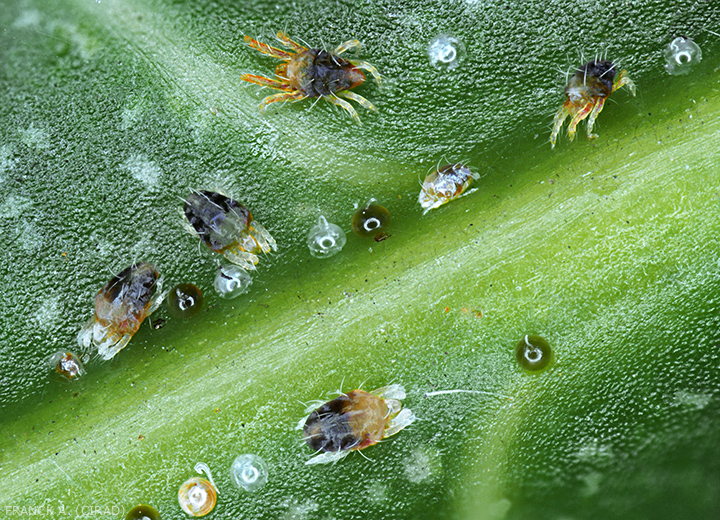 L'araignée rouge du manguier mesure 0,4 mm de long. Elle est très répandue dans les zones tropicales et attaque de nombreux arbres fruitiers.