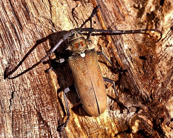 C'est un grand longicorne, atteignant une longueur de 5 cm au stade adulte.