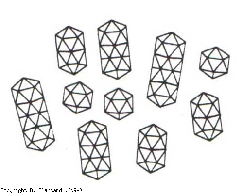 Les virions ont une forme variable. Les plus petits sont isométriques, avec un diamètre de 18 nm, les autres sont bacilliformes ; leurs longueurs, variables, sont de 29, 38, 49 et 58 nm.