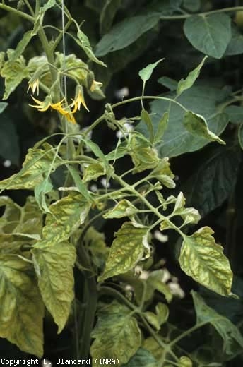 Légère marbrure et une mosaïque plus ou moins marquée sur les folioles. Celles-ci sont parfois filiformes en périodes de faible luminosité (figures 1 et 2). Virus souvent incriminé à la place du ToMV qui est mieux adapté à la tomate. |