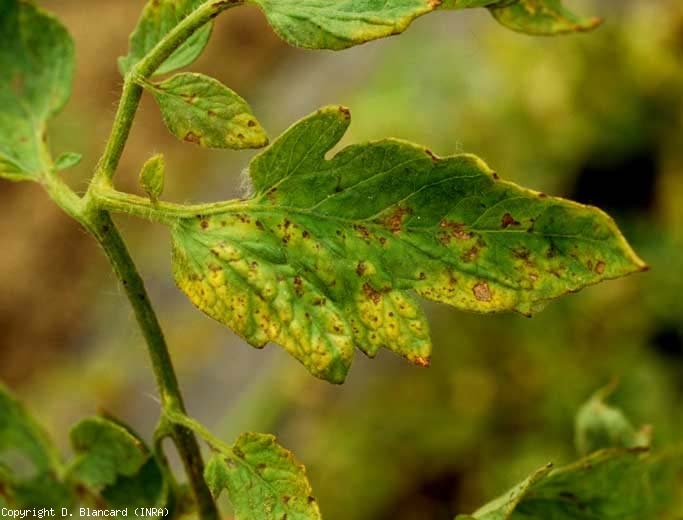 Une mosaïque jaune de type aucuba peut aussi être constatée sur foliole de tomate dans certains contextes.
