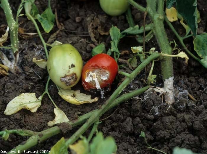 Athelia rolfsii (Sclerotium rolfsii) s'attaque à tous les organes de la tomate situés dans le sol ou à proximité, que les plantes soient très jeunes (en pépinières), ou adultes.