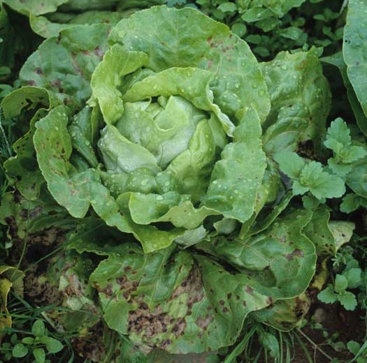 Des différences de sensibilité aux bactérioses sont constatées sur le terrain, entre types de salade (figure 10), mais aussi entre variétés. On note parfois des attaques bactériennes plutôt sur des plantes déjà affectées par une autre maladie (par exemple le "Big vein" ; consulter la fiche Virus des grosses nervures de la laitue (MLBVV).