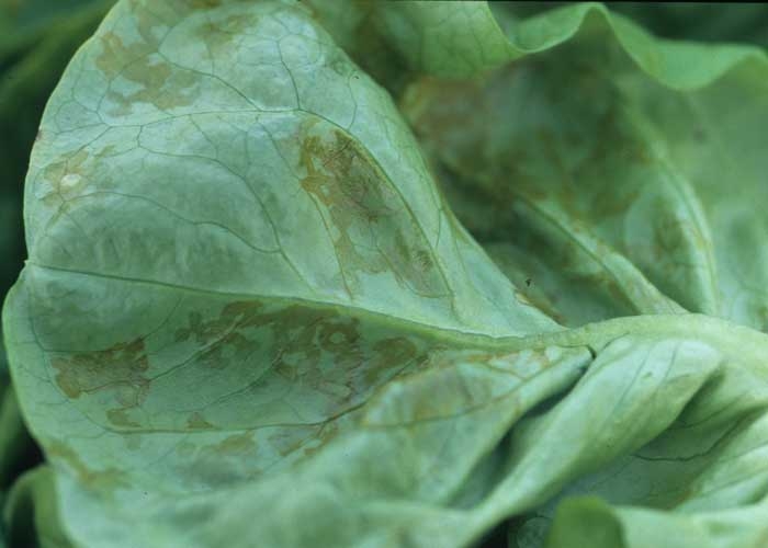 L'agent des anneaux nécrotiques de la laitue (Lettuce ring necrosis agent, LRNA) provoque une virose, apparue au cours des années 80 en Europe (Pays-Bas, Belgique et France), qui est communément appelée "maladie des taches orangées" et qui sévit essentiellement durant l'hiver. Comme son nom l'indique, elle provoque des altérations de couleur orange, de taille et de forme assez variables, sur les feuilles basses. En fait, dans bien des cas, il conviendrait de parler plutôt d'anneaux que de taches (figures 1 à 4), ce qui la différencie de l'anthracnose. De plus, ces taches et ces anneaux, bien que couvrant parfois la totalité du limbe de plusieurs feuilles (figures 5 et 6), ne conduisent que très rarement à la décomposition totale des tissus affectés et à leur chute. La présence de feuilles "criblées" n'est donc pas de mise. Des dégâts sont parfois présents sur la nervure principale des feuilles ; nous vous invitons à consulter les symptômes de Jaunissement des feuilles et de Taches sur la nervure principale causés par ce virus.C'est une maladie maintenant assez couramment observée sous abri dans les différentes zones françaises de production. Elle est favorisée par la monoculture de salades et présente certaines similitudes au niveau de son mode de transmission avec le "Big vein". Comme elle, elle semble être transmise par un champignon du sol parfaitement adapté à la vie aquatique : Olpidium virulentus (consulter la fiche Olpidium virulentus). Celui-ci est aisément observable dans les cellules du cortex des racines (figure 7). Le virus responsable de cette maladie n'est pas encore clairement identifié.