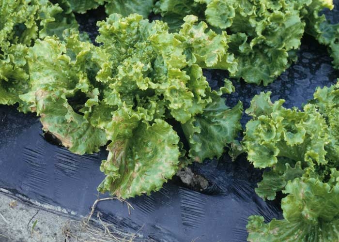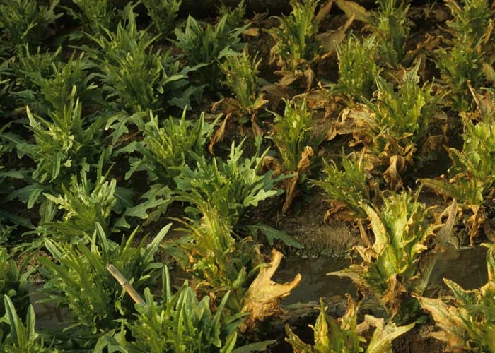 Certains pesticides utilisés dans de mauvaises conditions ou apportés malencontreusement sur les salades peuvent être responsables de symptômes assimilables à des flétrissements et/ou des dessèchements. En effet, on constate sur les salades affectées :- le brunissement et le dessèchement rapide du limbe ;