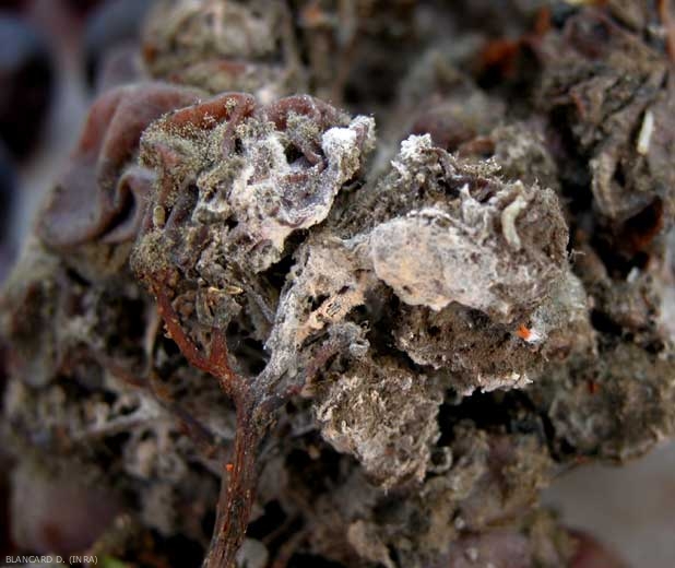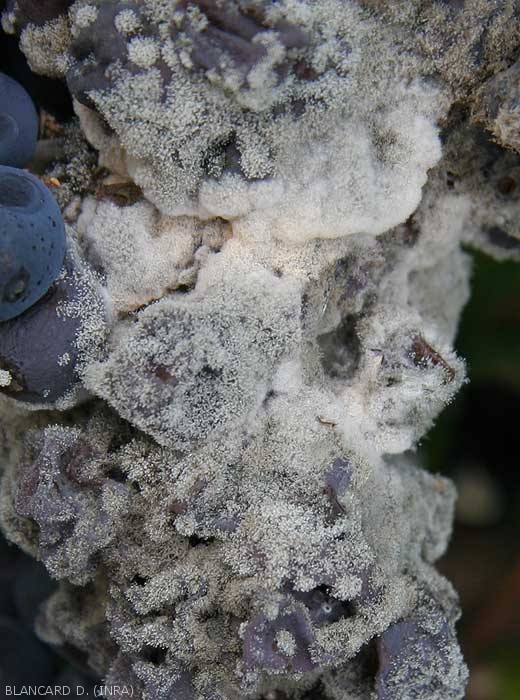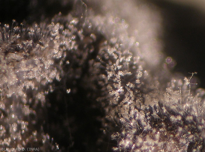 Les conidiophores de Trichothecium roseum sont très peu différenciés mesurant plus d'une centaine de microns de long. Ils ne sont remarquables qu'à partir du moment où les conidies sont produites (figures 1 à 5).