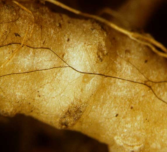 • souvent de discrets filaments blanchâtres à bruns cheminant sur les semences germées, les racines, le long de la tige et sur les fruits ;