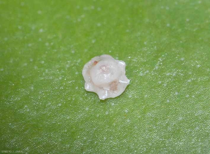 - les dégâts d'oviposition : ce sont essentiellement des dégâts perpétrés lors de la ponte. Les piqures ou incisions de ponte sur les arbres ou arbustes offrent des portes d'entrée à certaines maladies. En outre, les cicatrices d'oviposition évoluent souvent en chancre lors de la croissance du végétal.