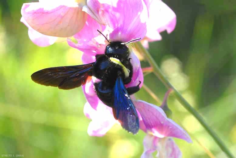 * Parmi les Apidae seuls des Andrena sp, dont A. fulva (Müller) et Xylocopa violacea (Linnaeus) peuvent être indirectement à l'origine de nuisances. La première est une abeille solitaire terrassière qui creuse son nid dans la terre dénudée. Lorsque ses populations sont importantes, elle peut causer des dégâts dans des pelouses non établies, les plantes bandes ou les rocailles.