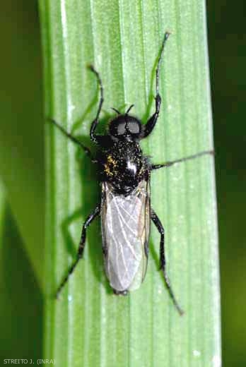 • larves hémicéphales : la tête est partiellement enfoncée dans le prothorax. La capsule céphalique est réduite, en arrière, à quelques éléments sclérifiés. La plupart des diptères brachycères orthorrhaphes ont des larves hémicéphales.