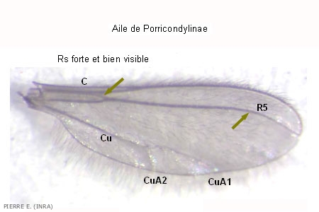 • Rs aussi épaisse que les autres nervures, Porricondylinae (figure 3)