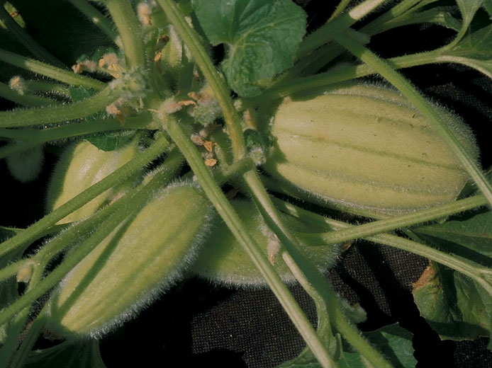- Fruit rond ou ovale, côtelé, à épiderme vert clair ou sombre, généralement très poilu.