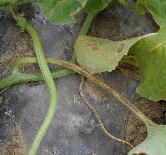 Pseudomonas syringae pv. aptata s'attaque essentiellement aux organes aériens du melon.