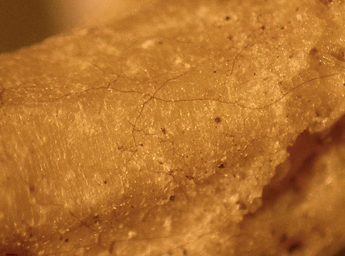 Sur les tissus altérés ou à proximité, on peut observer le caractéristique mycélium brun de ce champignon sous la forme de discrets filaments isolés (figure 6) ou de cordons parfois plutôt denses (figure 3).