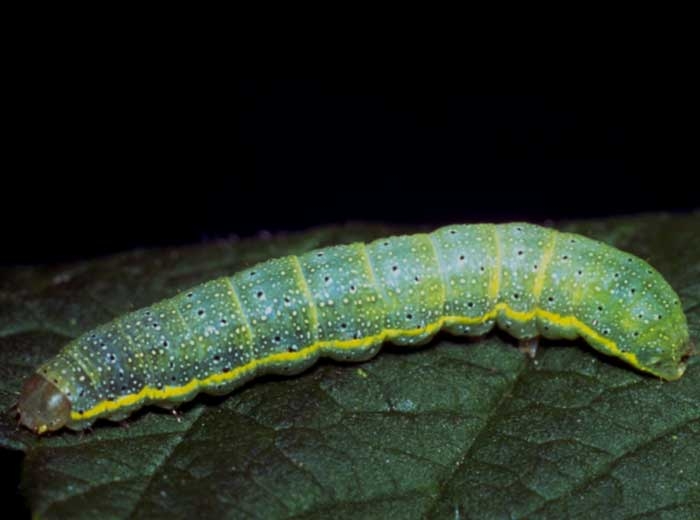 Stades de développement : les oeufs (figure 7-1), transparents, blancs, marron noir, mauves, etc., de diamètre inférieur au millimètre, sont déposés isolément ou par groupes à la surfaces des feuilles ou de divers supports (figure 3). Par la suite, ils éclosent et donnent naissance à des chenilles (figure 7-2) mesurant de 25 à 50 mm en fonction de l'espèce, pourvues de puissantes mandibules qui leur permettent de consommer en permanence les végétaux, notamment les feuilles (figures 3 et 5 à 7).