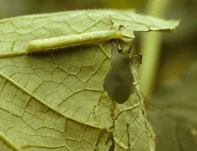 Ce sont les larves, en particulier les plus âgées, qui occasionnent les dégâts en consommant le limbe. Cela se traduit par la présence de nombreuses perforations plus ou moins régulières situées sur le limbe ou à sa périphérie (figure 1). Les folioles sont à terme plus ou moins criblées, trouées, découpées….