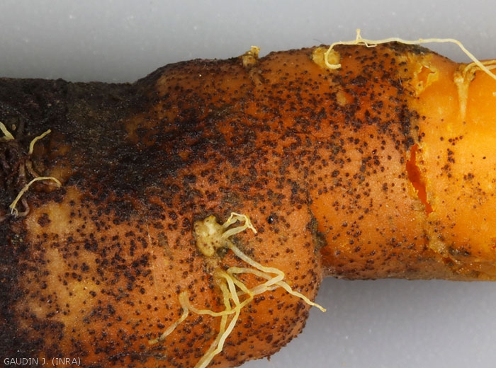 - Symptômes sur racines et organes enterrés ou proches du sol