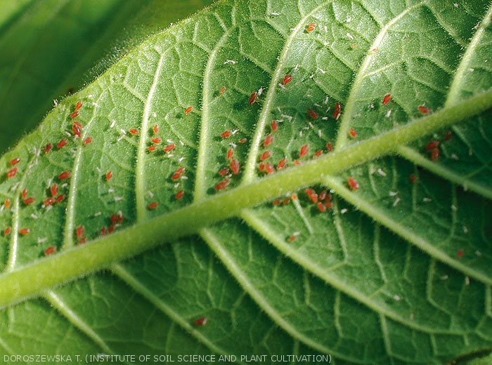 D'autres ravageurs, parfois aussi vecteurs de virus, se développent sur les feuilles de tabac et provoquent des symptômes assez différents :