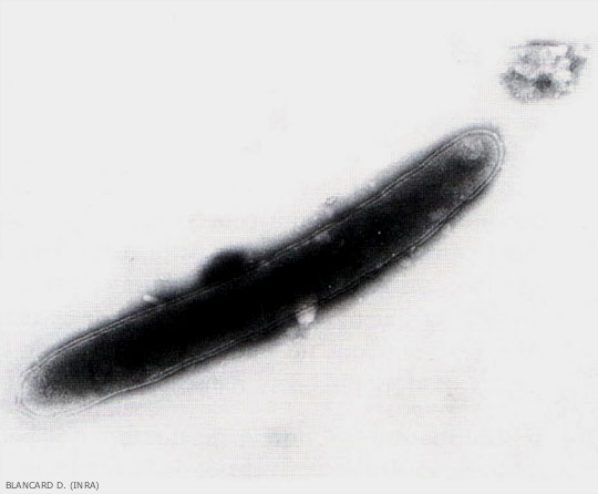 Pectobacterium carotovorum subsp. carotovorum, est une bactérie de type Gram -, en forme de bâtonnet (0,5-1,0 x 1,0-3,0 µm) et mobile grâce à des flagelles péritriches (figure 1). Cette bactérie considérée comme pathogène est surtout opportuniste ce qui explique sa très vaste gamme de plantes hôtes. Parmi les bactéries phytopathogène, Pectobacterium est le seul microorganisme anaérobique facultatif.