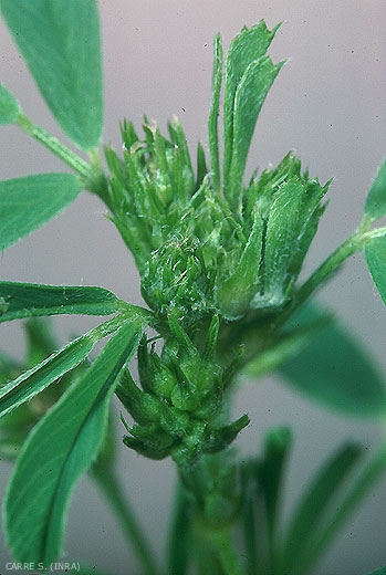 Contarinia medicaginis est inféodé à différentes luzernes, Medicago spp., Medicago sativa (Fabaceae).