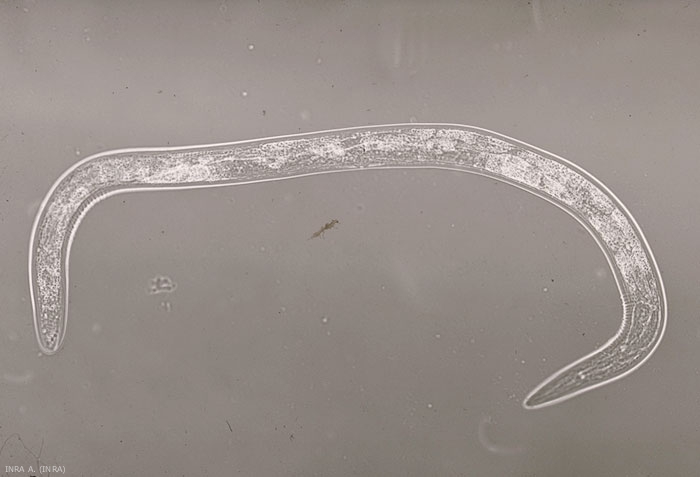 Les Trichodorus spp., nématodes migrateur ectoparasites des racines, sont de petite taille (0,6-0,9 mm), en forme de saucisse, bisexués (taux sexuel = 50) et possédant une dent buccale (stylet courbe) (figure 1).