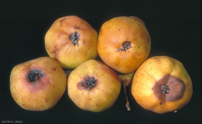 De telles taches peuvent apparaître à d'autres endroits du fruit, là, par exemple, où une feuille est demeurée en contact avec le fruit, et, exceptionnellement près du pédoncule. La valeur commerciale des fruits atteints peut être réduite communément de 50 à 60%. Les dégâts apparaissent soit pendant le mûrissement, soit pendant le stockage au froid en même temps que les pourritures des denrées.