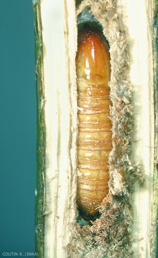 Au printemps, la larve poursuit le forage de sa galerie uniquement dans le bois et souvent au centre du rameau. La nymphose intervient d'avril à juillet (figure 3).