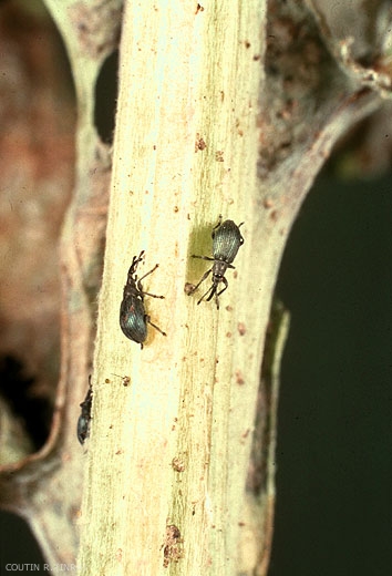 La larve est blanche, courbée, apode, la tête est jaune globuleuse armée de mandibules dentées (figure 3).