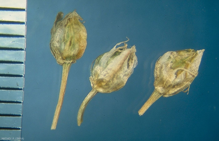 Fruit contenant les graines : capsule de 3 x 3,5 mm. Pas de caïeux dans l'inflorescence.