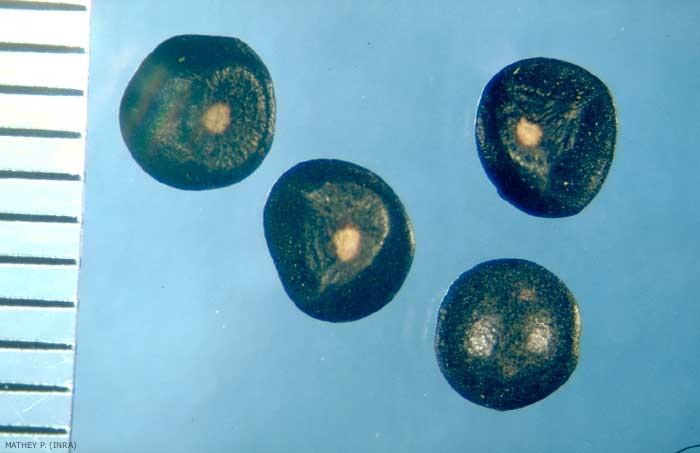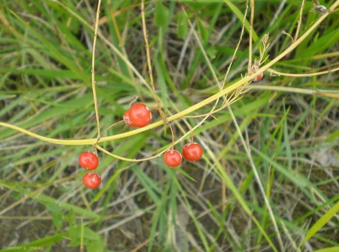 Fruits : baies rouges de la taille d'un pois une fois mûres, à pédoncule épaissi dans leur partie supérieure (figure 4).