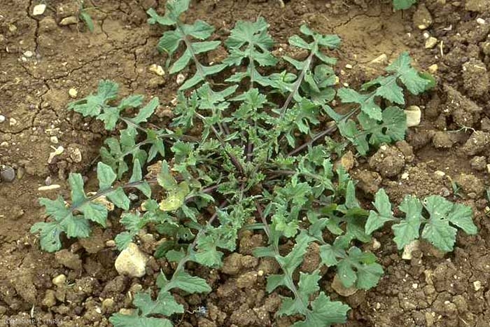 Feuilles pétiolées, lyrées-pennatipartites, les caulinaires à 1-3 lobes latéraux, oblongs et courts, le terminal très grand, hasté ; lobes latéraux plus au moins perpendiculaires à la nervure principale de la feuille ;