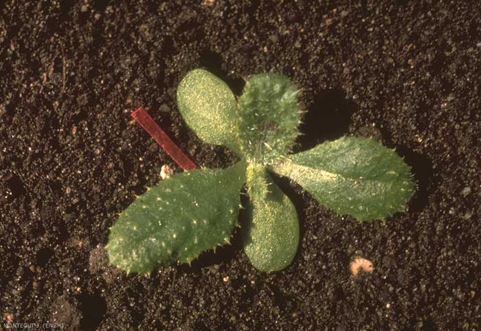 Feuilles sinuées ou pennatifides à longues épines. Décolorations blanchâtres au niveau de certaines nervures secondaires