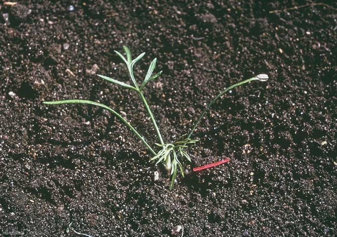 Feuilles triangulaires, allongées, 3 à 4 fois divisées pennatiséquées à lanières très allongées, les inférieures pétiolées