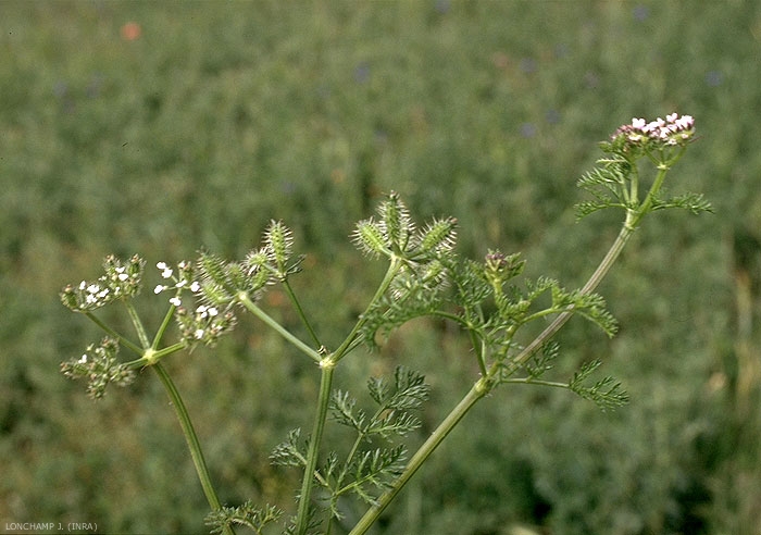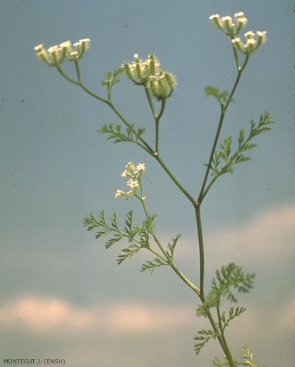 Feuilles petites, bipennatiséquées, à lobes un peu allongés. Feuilles ultérieures pennées, divisées plusieurs fois ;