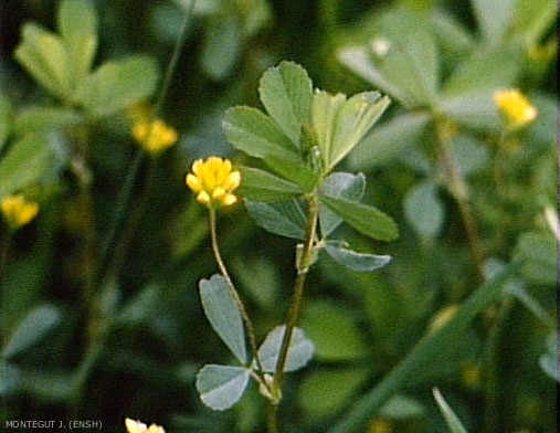 avec Trifolium campestre, Medicago lupulina. Au stade plantule avec toutes les autres espèces du genre Trifolium et du genre Oxalis.