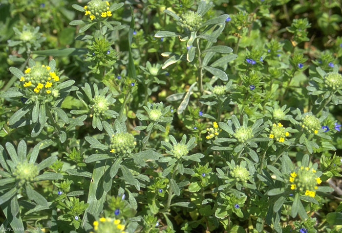 Inflorescence : petites grappes denses de fleurs jaunes restant sur la plante après la floraison mais devenant plus pâles