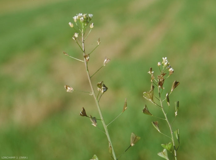 Fruits triangulaires, silicules échancrées et aplaties. Grappe fructifère lâche, graines oblongues par 10 à 15 dans chaque loge.