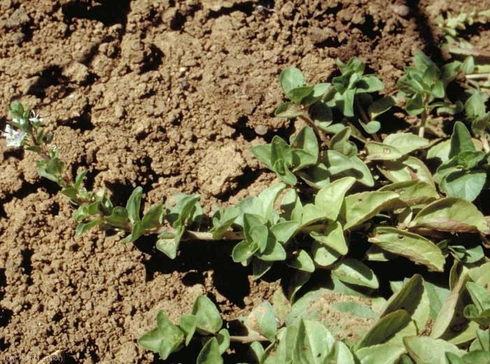 Tiges de 10 à 30 cm, couchées, enracinées dans leur partie inférieure. Plante glabrescente ;