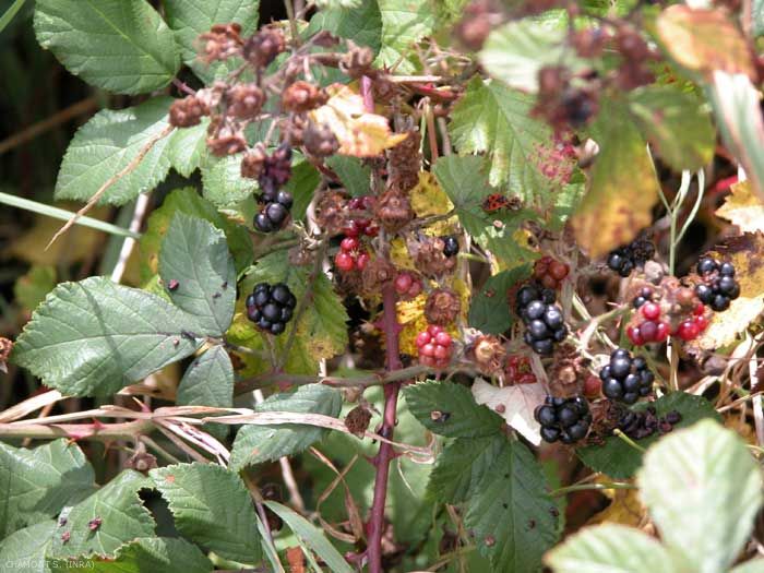 Fruits (les mûres) rougeâtres à bleuâtres, charnus, à saveur acidulée. Fruit composé se séparant facilement en petites drupes.