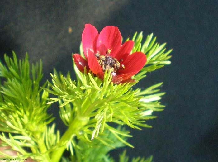 Cette espèce ne doit pas être confondue avec d'autres espèces d'Adonis, de couleur rouge comme Adonis annua (figure 3), rencontré aussi en cultures céréalières et utilisée en jachère fleurie.