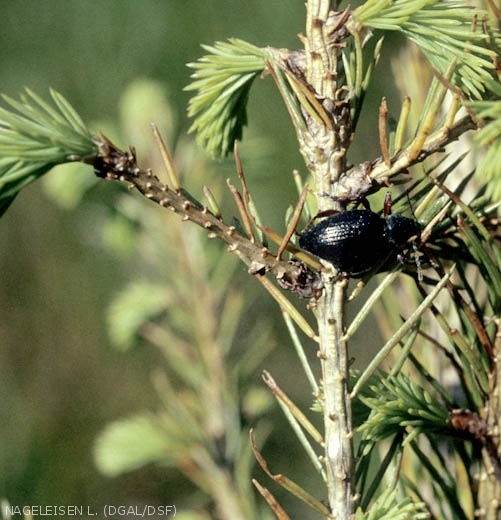 - Dégâts racinaires (larves) sans conséquences dans le domaine forestier.
