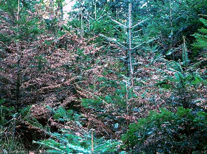 Hôtes habituels : Sapins, épicéas, douglas, pins