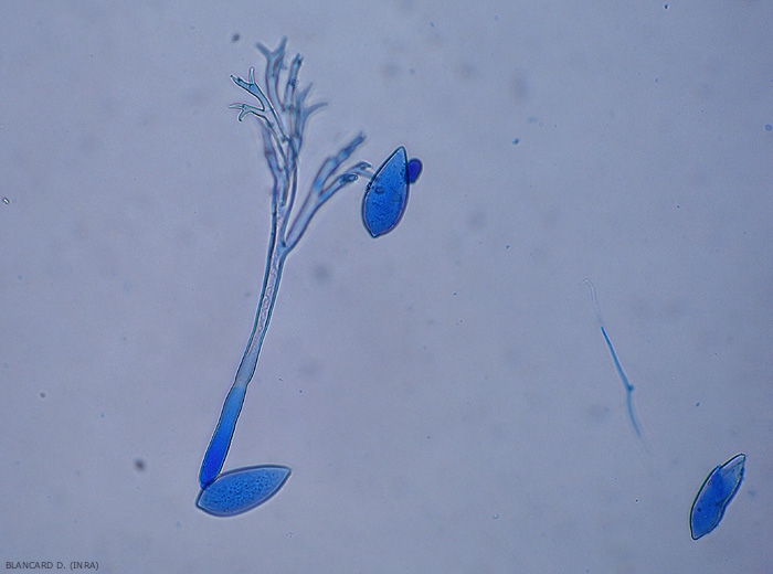 Le mycélium survit également dans les bulbes avant de s’étendre aux feuilles au démarrage de la végétation. Dans tous les cas, les lésions primaires produisent des spores responsables de la propagation de la maladie dans le potager (figures 1 et 2).